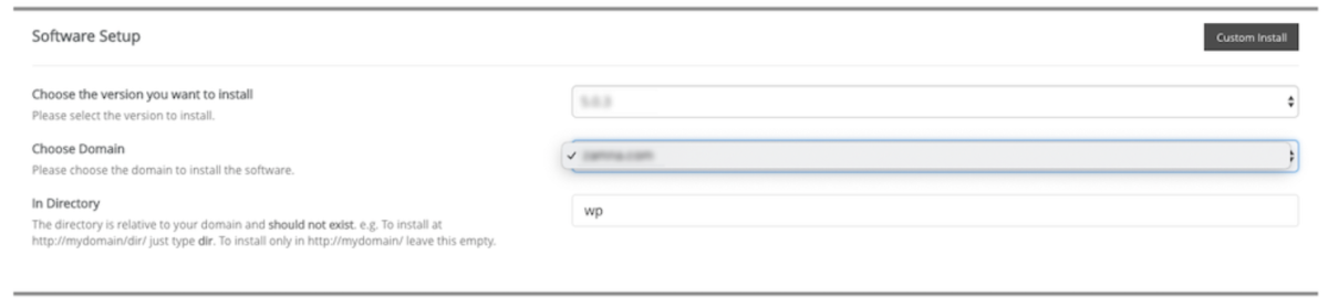 Then, choose the domain name you want for your WordPress account and ‘wp’ for the directory field: