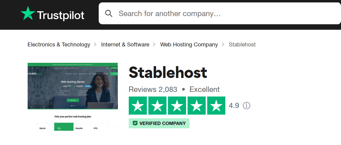StableHost provides a variety of hosting solutions, including shared, reseller, VPS, dedicated, and WordPress hosting. They are rated excellent on Trustpilot for garnering 4.9-star reviews from over 2000 users: